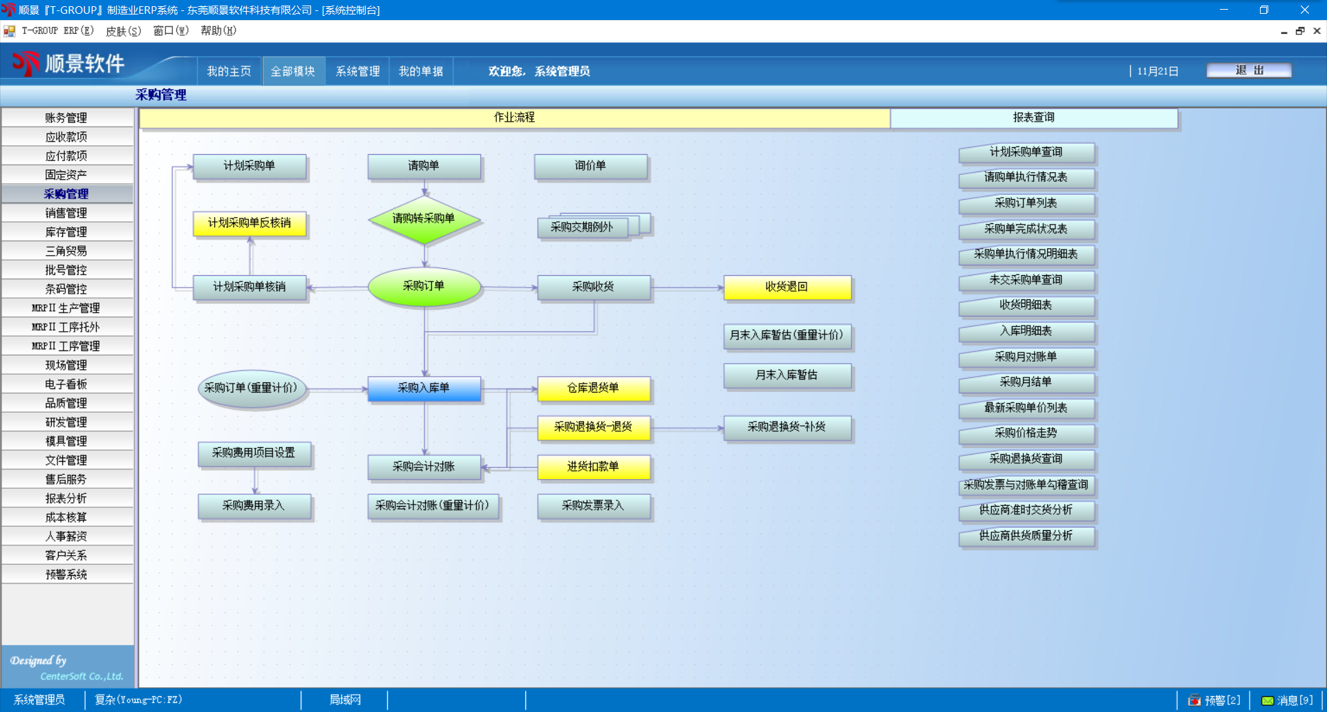 9. 提供各项采购﹑交货状况﹑暂收﹑退出﹑验收﹑逾期未交等相关报表;